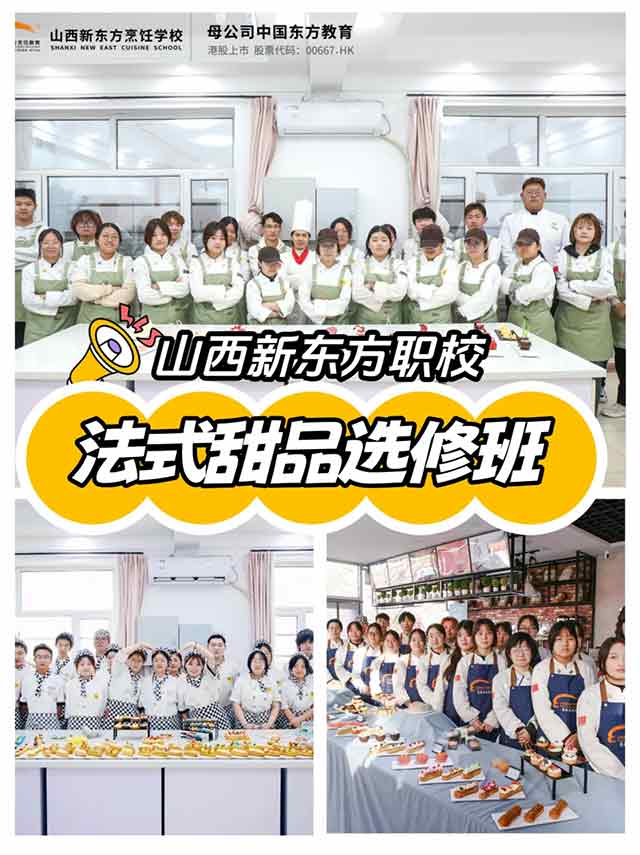山西新东方职业学校西点特色选修班——法式甜品选修班报名开始啦,为每一位怀揣法甜梦想的你,搭建起通往甜蜜事业的专业桥梁,让你在匠心传承中,解锁法式甜品的无尽魅力,成长为独当一面的专业法甜工作者!