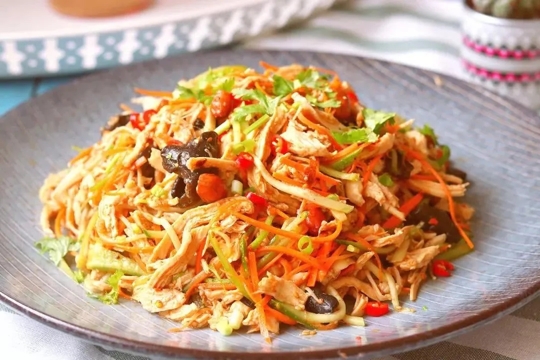 发布时间:2020-08-04【凉拌手撕鸡】 食材: 老母鸡1只、姜1块儿、纯净水适量、香葱3棵、鲜酱油1汤匙、陈醋2汤匙、辣椒油半汤匙、白糖1茶匙、熟白芝麻1小撮、盐6克 做法: 1…更多