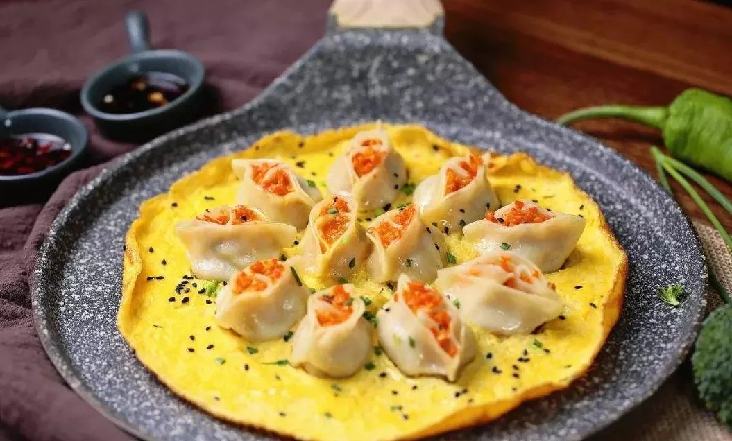 【黄金蛋抱煎饺】 食材: 饺子、鸡蛋、彩椒、香葱、黑芝麻、盐 做法: 1、锅中大火加油,饺子不解冻直接入锅中小火煎炸,往锅中倒水盖上锅盖焖制七八分…更多