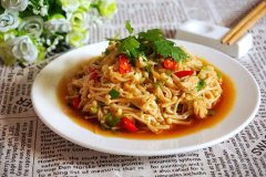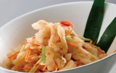 发布时间:2019-09-26雪白的金针菇,与橙红的胡萝卜和碧绿的黄瓜相配,用普通的调料略加调味,盛入精致的小盘之上,便成就了看上去如西餐般精致的前菜。雪白的金针菇,与橙红…更多
