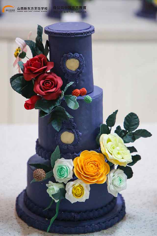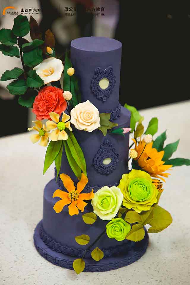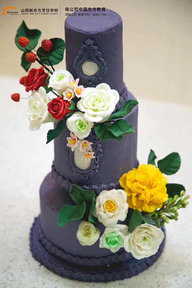 翻糖花卉制作是西点行业中极具代表性的技艺,对工艺精细度、色彩搭配能力及艺术审美有着极高要求,也是当下高端烘焙市场的热门技能方向。山西新东方西点专业敏锐捕捉行业需求,将翻糖花卉制作纳入核心课程体系,从基础的糖膏调制、花瓣塑形,到复杂的花卉组装、蛋糕整体装饰,课程设置层层递进,既覆盖传统经典技法,也融入当下流行的简约风、复古风等设计理念,确保学子所学与市场需求同频。