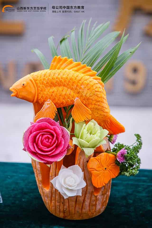 山西新东方职校中餐专业一场别开生面的果蔬雕刻考核火热上演,学子们以瓜为纸、以刀为笔,将平凡食材雕琢成麒麟昂首、凤凰展翅、花篮盈彩、雄鹰振翅的立体作品,不仅展现了扎实的专业技能,更凸显了学校“多元课堂育人才”的教学特色,为学子铺就了一条技能出彩、多元成才的道路。