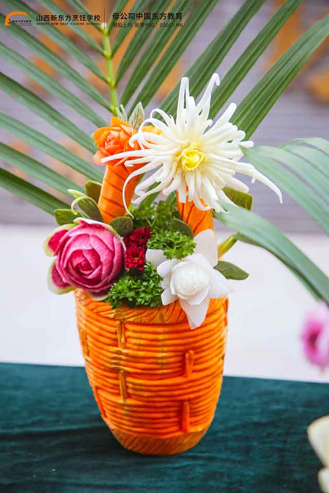 这场果蔬雕刻考核,正是山西新东方职校中餐专业“多元课堂”的一个生动缩影。学校深知,现代中餐人才不仅要会炒菜、懂火候,更要具备审美能力、创新思维与文化素养,因此在课程设置上打破传统单一的烹饪教学模式。