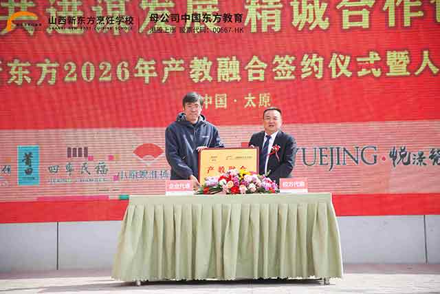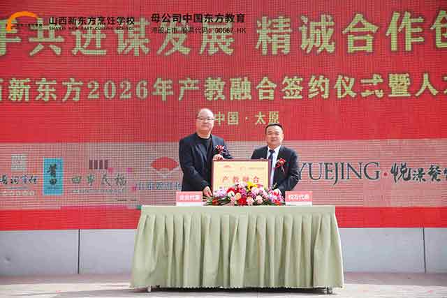 山西新东方职业学校隆重举行“千企万岗优才计划”产教融合授牌仪式暨人才预定会。学校校长、校长助理及各部门负责人出席活动,来自全国连锁餐饮、高端烘焙、星级宾馆、地方特色餐饮等多家知名企业代表齐聚校园,共商校企协同育人新路径,共筑学子高质量就业新保障。