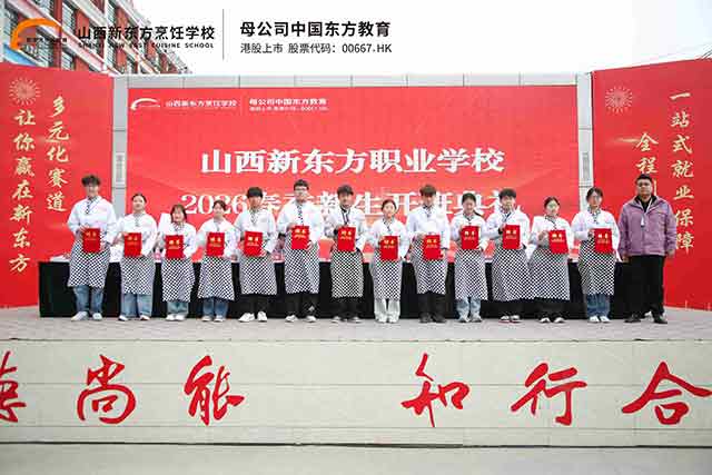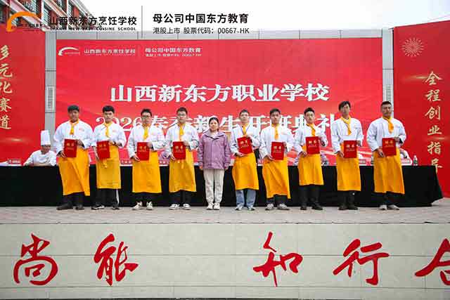山西新东方职业学校隆重举行2026年春季班级开班典礼。中餐、西点西餐专业全体新生齐聚一堂,在庄重而热烈的仪式感中,正式开启技能成才新旅程。本次典礼围绕规范养成、教学提质、就业护航三大核心,生动展现新时代职业教育蓬勃生机,有力诠释“职业教育大有作为”的时代命题。
